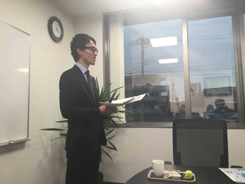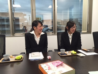 日増しに春を感じるお天気(^^)/ 桜の開花を首を長くして待っております。 そして、弊社へ・・・春とともにやって来る新入社員 この日は、入社説明会 年末のボーリング大会&忘年会以来のご来店となりましたが、 お二人とも素敵な笑顔は、相変わらずです。 この日、上田よりお二人へ突然の課題・・・・・・ それは、 あるお題についてみんなの前で発表!! 与えられ時間は 30分 残り10分、きらきらへ行くと、二人は熱心に打合せ・・ 30分、あっという間 お二人の準備も整い? いざ 発表スタート ![]() 〜やや、緊張気味のお二人 いや!堂々としておりました〜 限られた時間での準備、発表、こちらも楽しく勉強させて頂きました。 ![]() お菓子を食べながらでしたが、お二人には味わう余裕は無かったかな?? ![]() 残り少ない学生生活ですが、楽しい思い出が沢山できると良いですね★ |