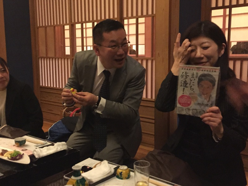 桜が開花したとても良い日に、村上・吉田の歓迎会 そして、昨年度もお疲れ様でした・・・ そんな気持ちも込めて 、金沢中央支社 松本様 、木村様と楽しい夜を過ごしてきました。 兼六園近く さくら亭さんにて 歓迎会と祝勝会 掘りごたつ式のお座敷 にて、外の景色も満喫できる落ち着いたお部屋でした。 ![]() マンデーでしたが、ノンデー ですよ だいぶ、あった〜い 日本酒がはいった状態でございます。 いつもの事ですが、楽しいゲーム大会がございまして・・・ 今回のゲームは「 本番ゲーム」 ゲームを説明しよう!! ?くじで出たお題を本番一回で決める。 ?一回でミッションクリアすれば、豪華景品GET、失敗した場合は、罰ゲームが待っているのである。 ☆難易度ランキング☆ 4位・・・・ライター着火 100円ライターを一回で火を着火させよ 3位・・・・けん玉 大皿 にうまく乗せよう 2位・・・・お菓子キャッチ 2人で息を合わせ、手を使わず、お菓子を口でキャッチせよ そして、、ダントツの難しさで あろうゲームは 1位・・・・顔面せんべい 顔の筋肉が勝負のカギ!額に乗せた煎餅を、手を使わずに口まで運ぶのだ ちなみに、この顔面ゲームのミッションに当たったのは、松本支社長 さすがですね!一番の盛り上がりでしたよ。 ![]() 木村さんお見事!! 松岡修三カレンダー GET ![]() ゴホン 呑んでばかりじゃないんですよ〜 新入社員へ、みんなからの質問タイムもあったりと、お互いの距離がグッと縮まった時間を 過ごすことができました。 新年度を迎え、益々パワーアップできるよう努力していきたいですね★ 清幸8名 これからも宜しくお願いいたします。 |