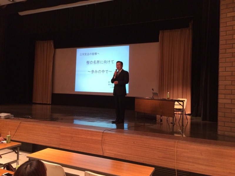 昨日、17日(火)は、 東京海上日動・三河支店様(豊橋支社、西三河支社、岡崎支社)にて 講演をさせて頂きました σ(^_^;) 場所は岡崎商工会議所大ホール 内容は、前半1時間が私の講演、 後半の部で、1時間が(株)業務プロセス研究所 尾籠裕之先生の講演です。 事前に話の内容を金沢中央支社長と打合せを行い、 そのストーリーに沿って、パワーポイントでプレゼンデータを作成し、 今年入社の吉田が作った会社紹介のムービーを持って臨みました。 ![]() ![]() これまでの歩みの中から、三つのターニングポイントを中心に取り上げて、 その時の気付きや、その後の取り組みなどを ありのままにお伝えさせて頂きました。 このブログでお伝えするのは難しいのですが、 何か一つでも会場の方々の心に届きますように・・・ と願いを込めて 勿論、緊張もしましたし、準備もありましたが、 自分自身のこれまでを振り返り、 さまざまなことを整理することが出来ました。 三河支店長様、そして三河支店の皆様、 このような素晴らしい機会を頂き、ありがとうございました。 〜 心より感謝! 〜 さて、次なるステージに向けて、更なる挑戦を続けます・・・ |