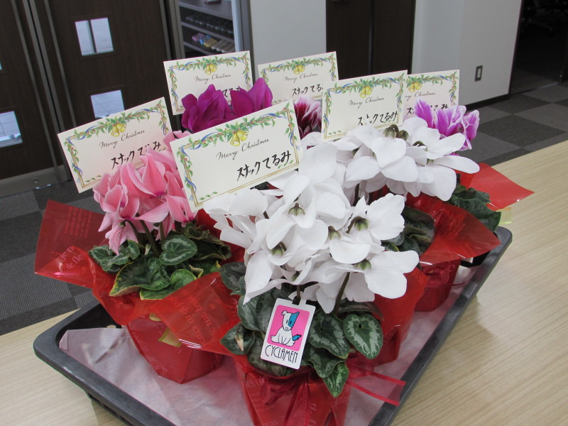 (娘とピアノ連弾します) 今日は・・・・クリスマス な・なんと あるお母さまからサプライズプレゼント頂きました。 ![]() 色とりどりのシクラメン 社内では喜びの声が鳴りやまず、 うれしいじ ![]() どの色も欲しいなあ、、、1つ選ぶのは大変でした。 本当にありがとうございます。 また、お店行きます!! 大切に育てますね。 ------------------------------------------------------------------ 先日、毎年恒例 保育園・幼稚園へ絵本のプレゼントも行ってきましたよ(^^♪ お陰様で こちらも今年で10年目を迎える事ができました。 ![]() 子ども達・先生方は、わざわざ時間を調整して、楽しい時間を作ってくださいました。 毎年ですが、本当に楽しい時間です。 ありがとうございます。 なんと、自分でサンタさんのプレゼントを買いました。 ロッテのバッカスチョコ 2個 味わってゆっくりと食べたいと思います。 |