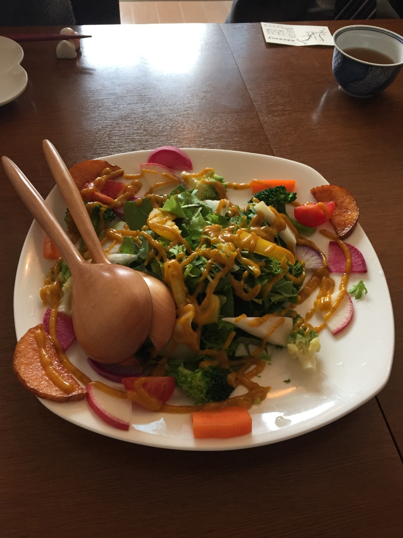 今日は新年会を兼ねてランチへ行って参りました\(^_^)/ 有機野菜、無農薬野菜を使用したヘルシーな料理が食べられるお店へ。地元産の野菜はもちろん、米や肉なども地元のものを使うという地産地消の店とのこと。 そして、スタッフの方の笑顔がとてもすばらしいかったです ![]() 最近テレビで、イタリア産の野菜で今が旬の美味しいものといえば、「○○○と○○○」と聞いたのですが、食べたことも聞いたこともないのでお店の人に聞くまで名前が出てきませんでした。 答えは、なんとこのサラダの中にあり興奮 ひょうたんのような形のバターナッツかぼちゃと、ブロッコリーの仲間でロマネスコです。味は甘くて食感もあり 15品のコース料理で、一つ一つとても手が込んでいました。主婦目線で勉強になります ![]() この時に、恒例ですが仕事のことや健康のことなどなど、「新年の抱負」を発表し合いました。 デザートはごまアイス、長芋のチーズケーキには白菜のソースで、また五郎島金時のシフォンケーキでした ![]() |
