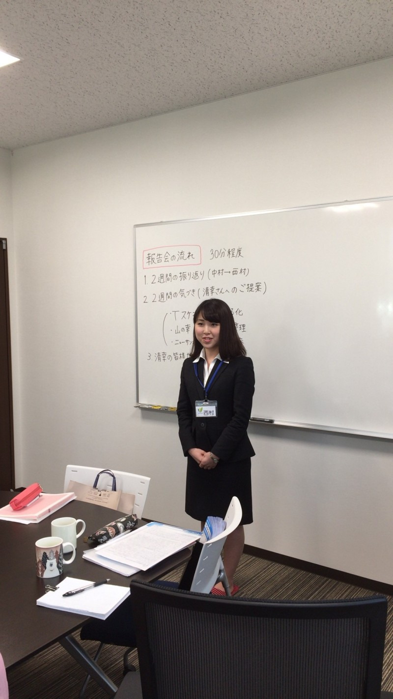 清幸新入社員の吉田と申します。 初登場ということで、簡単に自己紹介をさせて頂きます。 名前 :吉田小菜恵 出身大学 :北陸学院大学 趣味 :部屋の模様替え 自慢できること :?人間9人、猫10匹以上の大家族 ?バスケットボール歴16年 さて、清幸では東京海上日動の新入社員の中村さんと西村さんと 代理店留学という形で一緒に働いています(^O^)/ 二週間という短い期間でしたので、あっという間に時間が過ぎ、 5月29日に送別会ランチを開きました! と、その前に!!! 留学生のお二方の発表タイム〜 ![]() 中村さん ![]() 西村さん 二週間の振り返りや清幸への提案をしてくださいましたv(^-^)v 振り返りの場面では感極まり、涙の場面も…(:_;) また、多くの提案もして頂き、とても嬉しく思いました お待ちかねのランチターイム 今回は「桜はなび」さんにお邪魔しました! ![]() 大勢での焼き肉ランチはとっても美味しかったです 清幸、留学生一人ひとりからお言葉を頂きました。 再び涙の場面で、濃いに2週間を思い出しました。 ![]() 集合写真は可愛らしくハートのポーズ 清幸から留学生のお二人にプレゼントをお渡ししました! ![]() 留学生のお二人からもプレゼントを頂きました!! 新入社員が写っている写真がないとのことで、 写真立てをくださいました!! 細やかに気遣いに大変嬉しく思いました(T_T) (写真は最後に載せます!) 二週間という短い期間でしたが、清幸にとって素敵で 充実した2週間でした。 また、同じ新入社員として、多くの刺激をもらい、 これからも頑張ろう!と思いました。 次に中村さん、西村さんとお会いするときには、 お互いが成長した姿を見せられるように、 日々精進していこうと思います。 中村さん、西村さん 楽しい二週間を本当にありがとうございました\(^_^)/ P.S 出口さんがムービーを作ってくださりました! (弊社のFacebookよりご覧になれます) 一人で見て、涙を流したいと思います…笑 ![]() あんしんセエメエと頂いた写真立て |