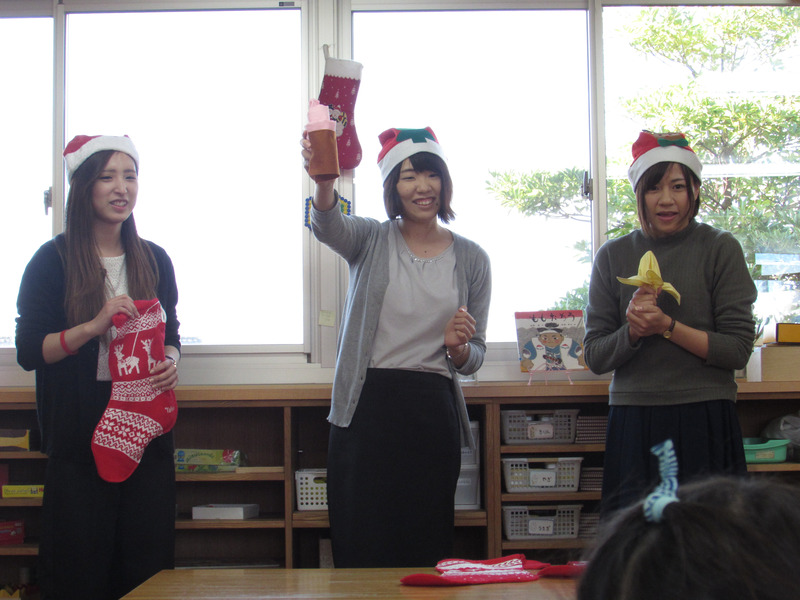 今年も地域の保育園・幼稚園へ絵本をプレゼントさせて頂きました。 双葉町子供の家保育園 きりん組さん(^◇^) ![]() 子供達に少しでも楽しんでもらえるよう、出し物をお披露目! ![]() ベテラン保育士さんの前では、やはり緊張気味( ;∀;) 「さ〜て ハンカチで何ができるかな?」 黄色のハンカチは・・・バナナ ピンクのハンカチは・・・いちごのソフトクリーム 白色のタオルは・・ ケーキの出来上がり (・・・何かな 何かな?子供達からはケンタッキー(笑)?・・・) やっぱり食べたくなるげんてね さぁ クリスマスパーティーをしよう(◇)ゞ リンリンリンリン あれあれ 鈴の音が聞こえてきたよ ![]() 「メリークリスマス ☆彡」 「みんなに絵本を持ってきたよ?」 日本語をペラペラ話すサンタさん 突然のサンタさん登場にビックリ。 「みんなで仲良く読めるよ〜」 サンタさんとの約束もしっかりできました。 素直な子ども達の目の輝きが今も忘れられません。 楽しい時間も束の間、忙しいサンタさんは、次のプレゼントを渡すため去っていきました。 きりん組さん、ありがとう 園長先生や先生方にもお忙しい中ご協力頂きました。 本当にありがとうございます。 ウフフフフ |