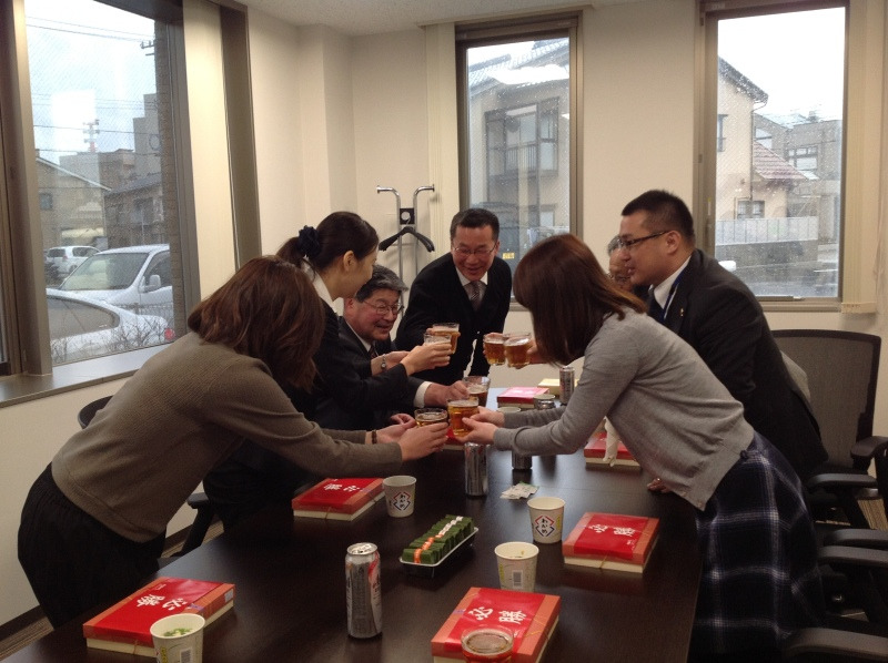 年末の合同説明会でご縁のあった女性が、 東京海上の?P制度の試験を受けてくださいました。 作文や支社長面接、支店長面接など数々の壁を突破し、 見事合格しましたっ 私は彼女と同年代なのですが、担当者から彼女の素晴らしさを耳にしたり、 弊社へのメールなどから、たくさんのことを学ばせてもらってます!! そんな素晴らしい女性のお名前は・・・ 赤池 奈穂美(あかいけ なほみ)さん です!!! 先日、赤池さんを”最終面接”と称し、弊社に来ていただきました。 赤池さんには待機していただき、清幸メンバーはクラッカーを手に別室へ。 赤池さんの入室と同時にパン サプライズでお祝いをさせて頂きました(*^-^)b (動画をお見せできないのが残念・・・ そして赤池さんと一緒に弊社でランチをしました ノンアルのビール ![]() お供はいつもお世話になっている 芝寿しさん ![]() とっても美味しかったです 赤池さんはお酒が好きだとのこと。 お酒の席が楽しみです(・∀・)/ ![]() 左から 赤池さん、太田、上田 |