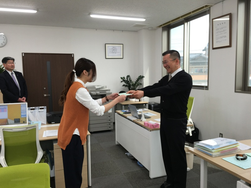 )二次会のカラオケも最高に盛り上がりました ![]() 素敵な歓迎会を企画してくださった赤池さん、吉田さん、本当にありがとうございました。 ![]() ( 背の順に並んでみました )石川県一「人が育つ会社」を目指す清幸さんでの貴重な経験を通して、日々「感謝」の気持ちを持って成長していきたいです。 短い間ではありますが、明るく元気に、フレッシュな風を吹かせられるよう、一生懸命頑張りますのでよろしくお願い致します! |