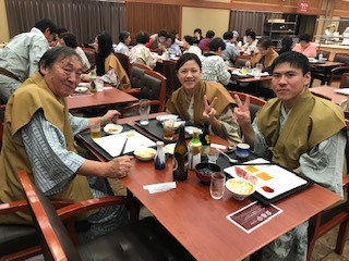 こんにちは? 吉田です。 つい先月まで 暑い暑い と言っていましたが、 最近はぐっと冷え込みましたね・・・??? 風邪が流行っているそうなので、皆様十分お気を付けください (私は2週間ほど前、溶連菌にかかりました。 5歳〜10歳の子供がなるものだとか・・・ さて、先週末家族と温泉へ行ってきました 家族と言っても9人全員では行けないので、父と弟の3人で 「温泉に一泊してゆっくりしたいなぁ」 「湯快リゾートでいいから行きたいなぁ」 なんて父から何度もアピールされたので、 温泉好きの弟(湯快リゾートマスター)と計画。 今回は 片山津温泉 NEW MARUYAホテル にお世話になりました。 ![]() キャンペーン中で、お部屋をグレードアップ出来たため、 3人では持て余す広――――いお部屋GET 湯快リゾート恒例のバイキング ビールを父に注ぐと「あら〜いいねぇ、幸せやねぇ」なんて。 ![]() 店員さんにパシャリ 食事のあとは運動ですね 元卓球部の父。熱が入ります。 ![]() 温泉卓球のつもりがガチでした。・・・全然楽しくナイ 父と弟は浴衣を濡らすほど汗をかいたそうです。 (部屋に戻ってから浴衣を干してました。初めて見たわ。) 女子バレーを応援し、お風呂に入り、 11時頃から飲んで食べて・・・1日で2キロ増・・・ 一泊二日で県内の温泉でしたが、 ゆっくり出来たそうで、父も満足してました 家にいてもなかなか時間も合わず、会話も少ないのですが、 この温泉でいろんな話が出来たので、とてもいい時間でした 今度は吉田家女子4人で温泉にいきたいなぁ〜 |