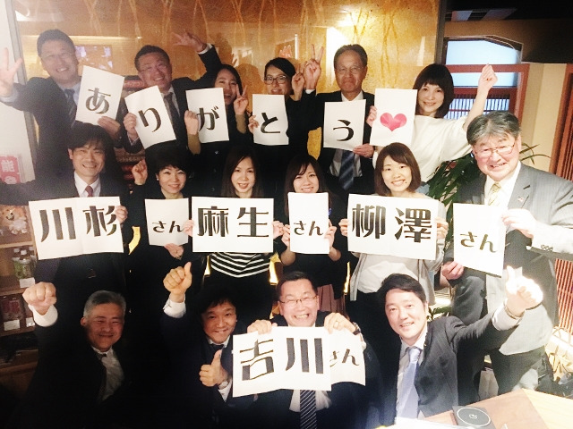 こんにちは 先日弊社で壮行会&祝勝会を開催しました 場所は川杉支店長御用達の焼肉店 当日まで会の名前が確定せず、ドキドキ・・・ 無事、祝勝会として開催することが出来て本当に良かったです。 皆様、本当にお疲れ様でした 早めに会場入りし、清幸スタッフ全員で準備(仕込み?)・・・ 前半パートは祝勝会 ![]() ![]() 会はオープニングムービーからスタート ![]() 支配人より川杉支店長へシャンパンのプレゼント 吉田はシャンメリーしか飲んだことがないので、 本物のシャンパン・・・・・・うまッッッ ![]() 札(?)が乗っているお肉との初じめてのご対面 〜恒例??お楽しみタイム〜 今回は昔ながらのゲームで盛り上がりました ゲーム中の様子・・・ あっちむいてほい ![]() 割りばしキャッチ ![]() けん玉 ![]() ![]() 漢字連想ゲーム ![]() ![]() 3番勝負でも決着はつかず、けん玉サドンデス対決へ サドンデスもなかなか決まらず、全員がチャレンジするも決着がつかない 勝負の行方は・・・・・ ![]() 勝った井田さんのチーム(きらきらチーム)には 豪華お肉のプレゼント (写真を撮り忘れました・・・ 惜しくも敗れたいきいきチームの皆様には罰ゲームが ![]() 罰ゲームの盛り上がりは最高でした 罰ゲームの一人ずつの様子の公開は控えさせて頂きます。笑 (井田さんが勝ってくれて本当に良かったです。) 後半パートは壮行会 ![]() ![]() ![]() サプライズのお手紙(これまた恒例??)&記念品贈呈 これまでの感謝の気持ち・熱い想いを込めて・・・ 川杉支店長・麻生グループリーダー・柳澤さん・吉川さん 本当にありがとうございました!!! 〜新天地での更なるご活躍を、心よりお祈り申し上げます〜 ![]() |