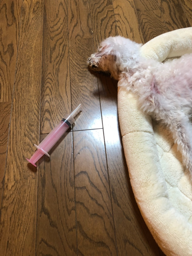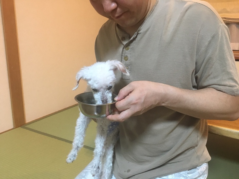 トイ・プードル犬 ミル ![]() (約7年前) 加齢とともに体が弱り、自分で立ち上がることが出来なくなりました。 ![]() 後ろ足は完全に麻痺しており、感覚が無いようです。 歩かないため、腰からお尻、太ももの筋肉はすっかり痩せてしまいました。 立ち上がって、自分で水を飲むことが出来ないので、2、3時間おきに家族で水を飲ませます。 体調が良いと自分で飲めるのですが、 自分で飲めない日は注射器のようなもので口から喉へ流し込みます。 ![]() 最近は自分でオシッコを出しにくいようで、 お腹の辺りを触り、張っているようだと優しく押してやります。 すると排尿します。 そんな状態のミルですが、強い生命力を感じる瞬間があります。 そう、次のように食べている時・・・ ![]() 抱きかかえても、後ろ足はダラリとぶら下がっています。しかし、顔の動きは異なります。 目が見えないため定まらないのですが、とにかく匂いのする方向の空をパク!パク!と。 顔の前にご飯を持って行くと、力強く食べるんです。 食べることが生きること と感じるくらい・・・ 子供達が幼い頃、我が家に来て、約17年 ![]() (5年前 写真右が年老いてきた頃の”ミル”、左は若い”福”) 家族をどんなに癒してくれただろう 家族をどれほど笑顔にしてくれただろう 頑張って食べているミルを心から応援したい ミル、がんばれ! |