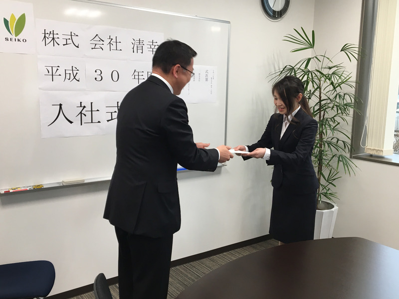 皆様、こんにちは 吉田です。 2018年4月2日 株式会社 清幸 平成30年度 入社式 今年もご縁があり、新たに1名清幸メンバーに加わることになりました 笑顔のステキな 竹中 美咲さん です 内定が決まった後も何度も弊社に足を運んで頂きました なので、入社式でお会いしても あまり久しぶりな感じがしませんでした。笑 〜入社式の様子〜 ![]() 辞令交付 ![]() 社長祝辞 ![]() 清幸スタッフより一言 ![]() 竹中さんより一言 ![]() ![]() ![]() まるさんの美味しいお寿司ランチ ![]() まるさん、いつも美味しいお寿司ありがとうございます 入社式が終わった後は、 全員で記念撮影 ![]() ![]() ![]() 竹中さんが加わった、NEW★清幸 2018年度も宜しくお願いします ![]() 長男と次男(?)のオフショット |