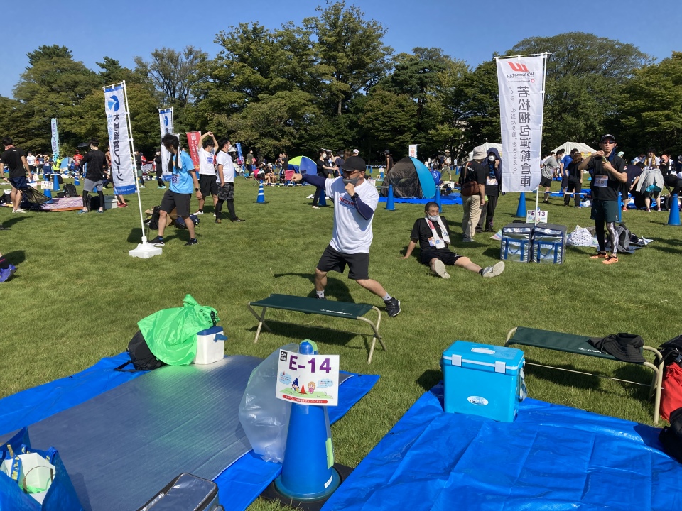 「ハーフの部(1週 約1.9qを11周走る)」 に参加時間制限もあり 2時間(1週 約10分程) で走らなければなりません。清幸メンバーは8人・・ 2キロ10分って早くない・・? しかも全員は走れない・・ 誰か2週走る・・? いやいやいや・・・・。 ということで!お客様や東京海上日動の担当の方にお声かけし、 清幸3名 お客様4名 東京海上様2名 で走ることに! 走る順番・タスキを渡す相手 熟考しました。 チームミーティングの様子 トップバッターで緊張している私の元に