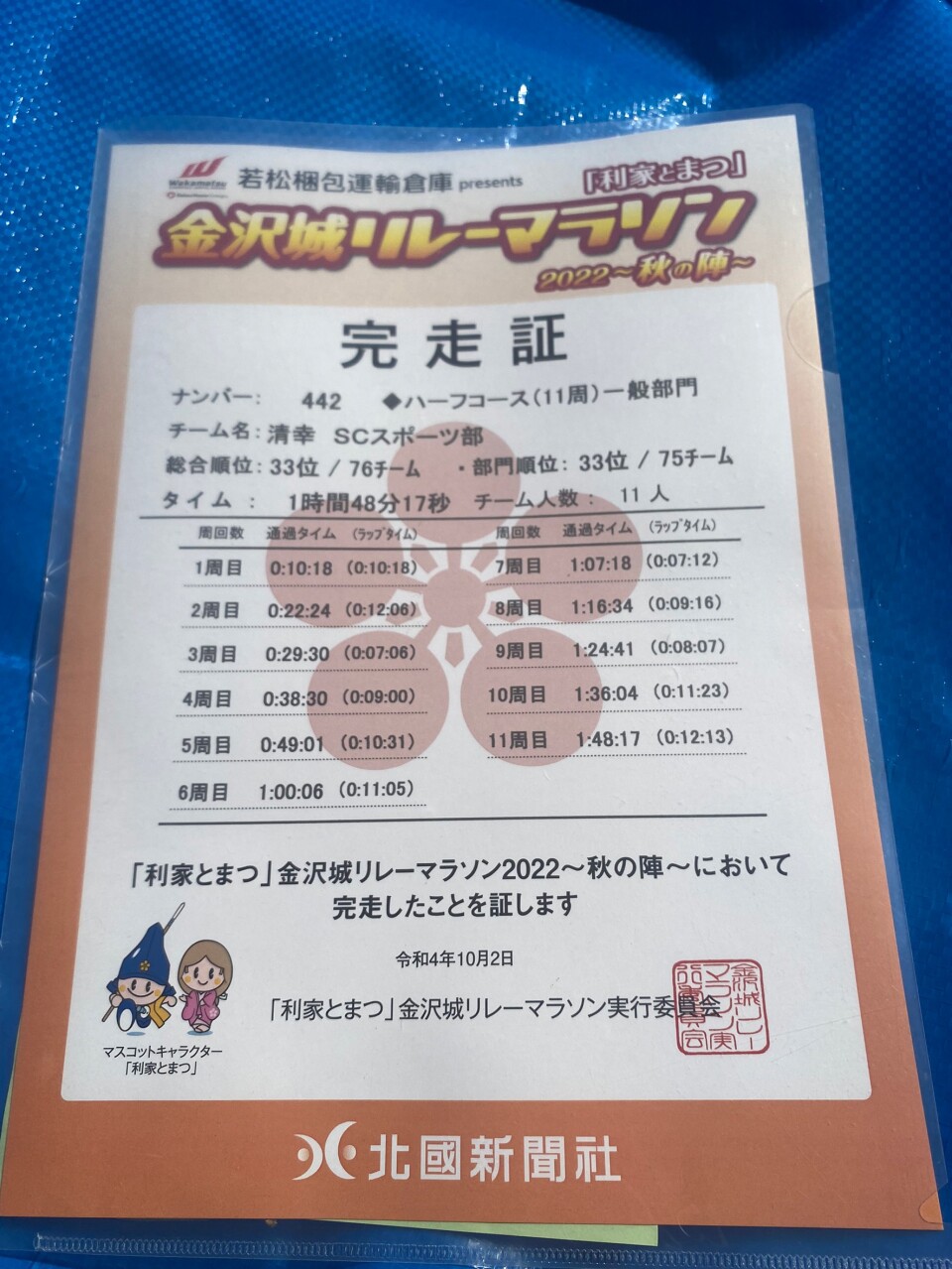 2022年10月2日に行われた 金沢城リレーマラソン〜秋の陣〜 に初参加しました!!先週の寒さはどこに?!