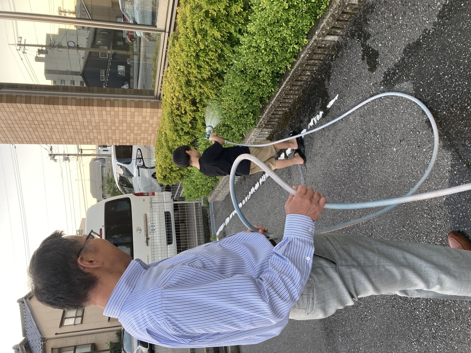 昨日は猛烈な暑さ、金沢で36.5℃ 今年一番の猛暑日に 危険な暑さはまだ続くようですね・・・ 夕方 お客様のお子さまと一緒に清幸園へ (事務所駐車場の愛する植物たち)たっぷりと水やり。 上田園芸の親方・上田と共にお手伝いしてくれました。 重いホースをずっと持ちながら・・・ 足元もビチャビチャになっても気にせず とっても頑張り屋さんでした。 ありがとう すごく助かりました。 上田じいじもニッコニコやったよ |